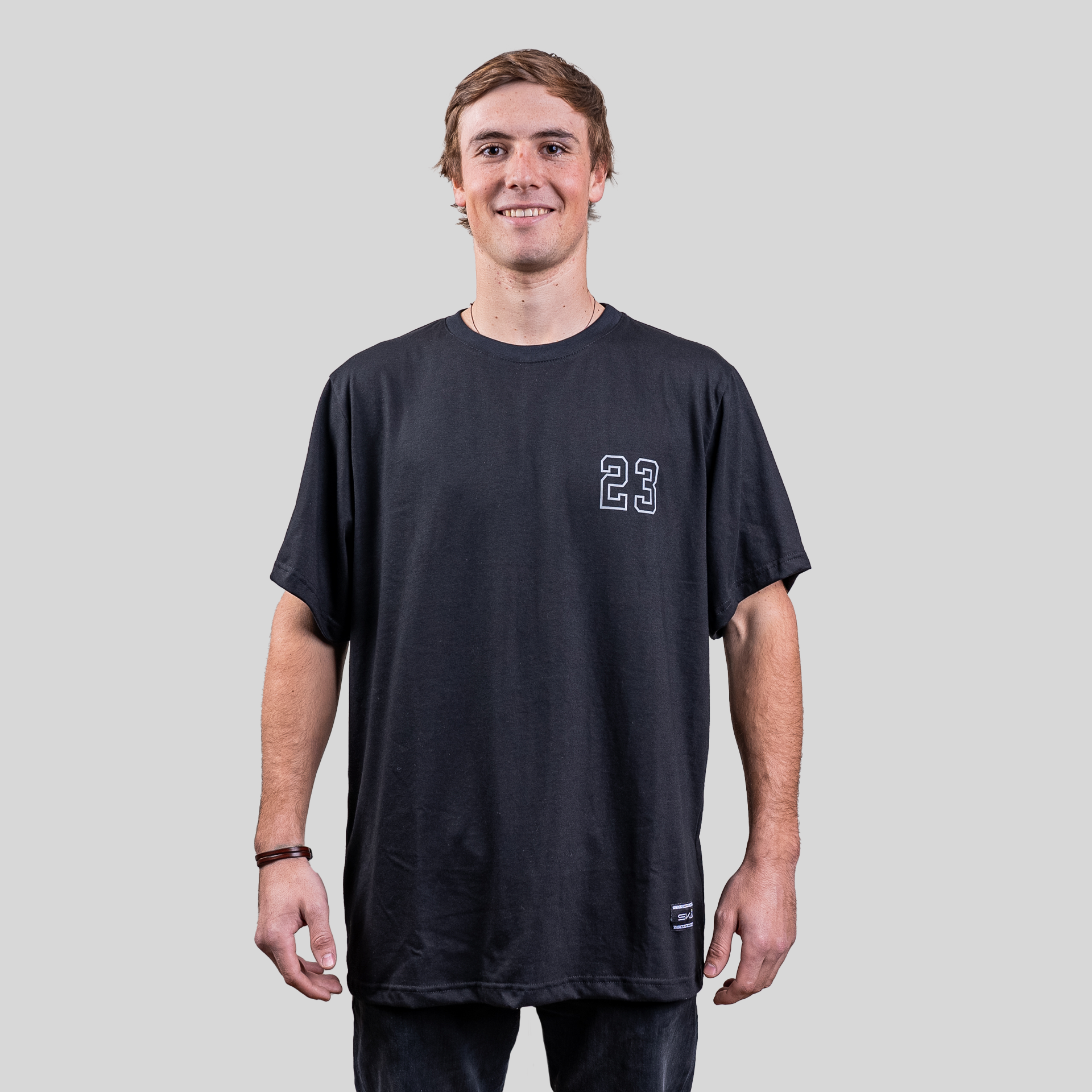 Polera negra oversize de algodón con su diseño en espalda referente con el numero 23, diseñada para quienes valoran lo simple con actitud. Su tejido suave ofrece comodidad total, mientras que la etiqueta de cuero en el pecho le da un detalle sutil pero con carácter. Perfecta para cualquier ocasión, combina con todo y nunca falla.
