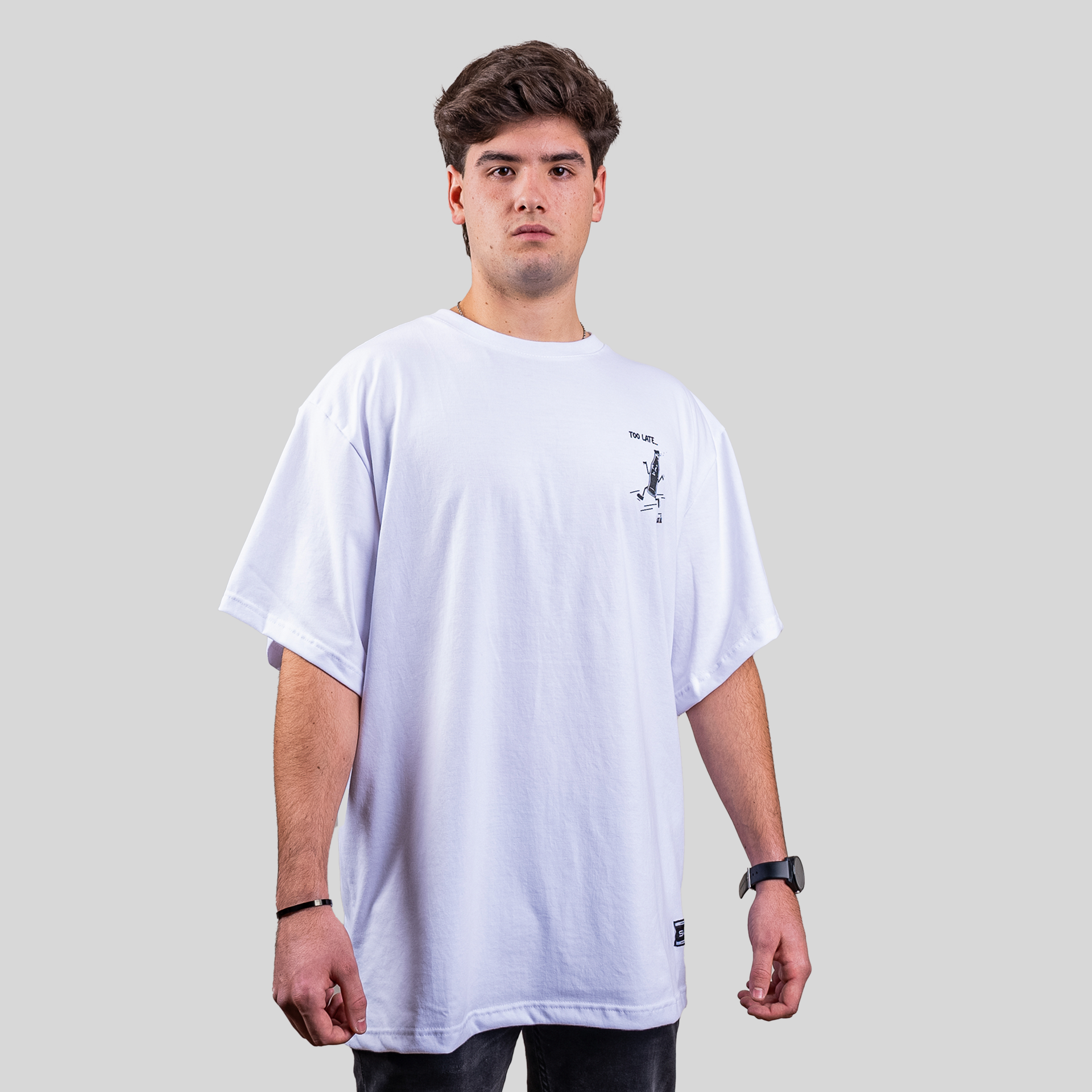 Polera blanca oversize de algodón, diseñada para quienes valoran lo simple con actitud. Su tejido suave ofrece comodidad total, mientras que la firma de la marca en el pecho detalle sutil pero con carácter. Perfecta para cualquier ocasión, combina con todo y nunca falla.